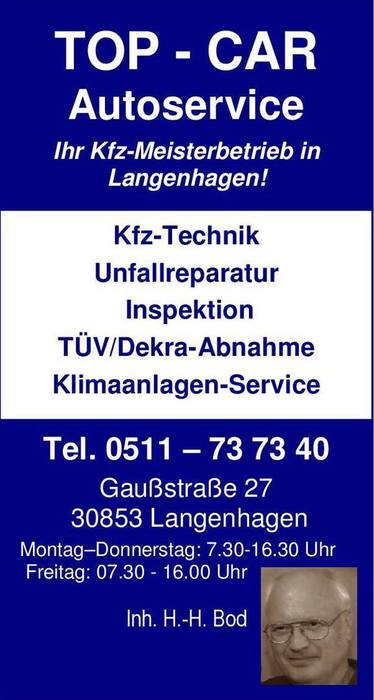 Top-car autoservice, langenhagen. kfz-meister hans-heinrich bod und das team heißen sie herzlich willkommen auf der homepage von top-car autoservice!. Treffer 1 25 von 34 1 bis 25 von 34 adressen ✉ zu autowerkstätten in langenhagen mit am pferdemarkt 84, 30853 langenhagen top-car autoservice.